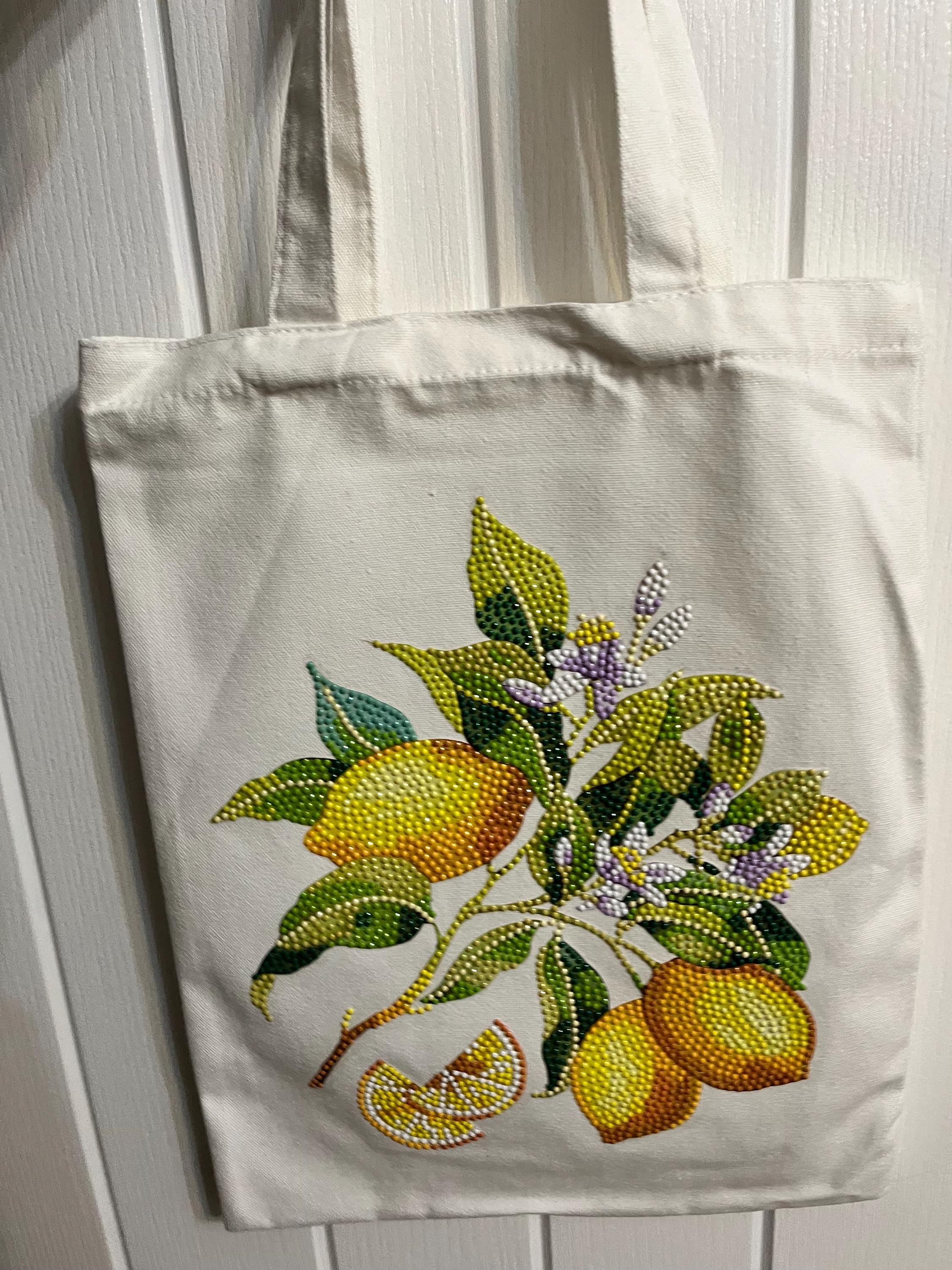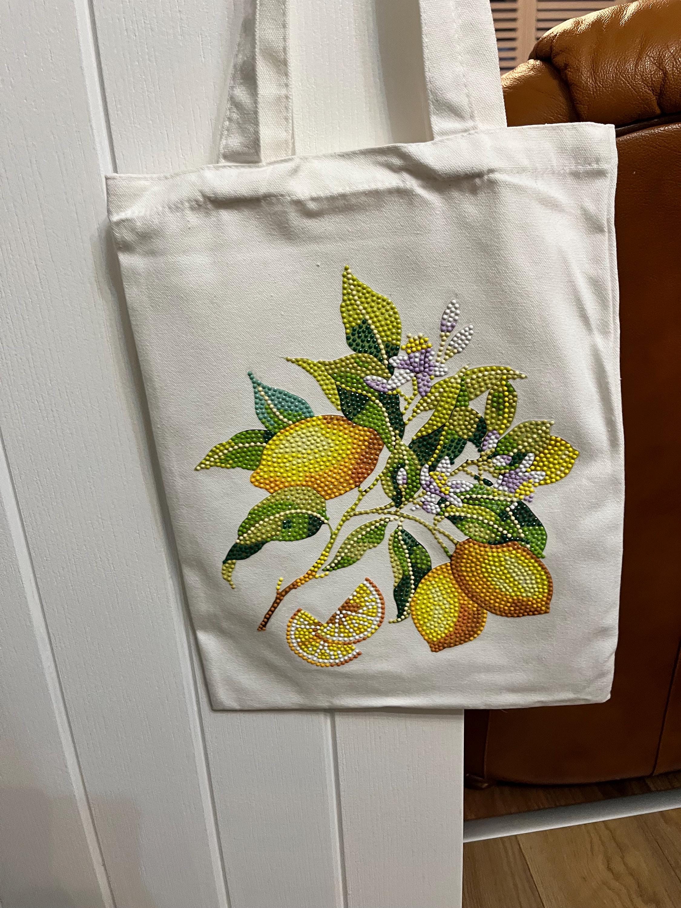 The bag is A4 size, strong handles, ideal for holding essentials and other items. Its cheerful lemon design adds a fun pop of colour, making it a lovely present for birthdays, thank-you gifts, or anyone who loves handmade items.